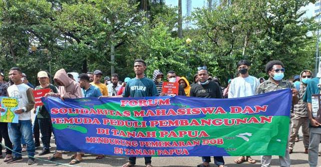 JAKARTA — Forum Solidaritas Mahasiswa dan Pemuda Peduli Pembangunan di Tanah Papua menggelar aksi damai mendukung pengesahan daerah otonomi baru (DOB) di Provinsi Papua. Aksi yang berlangsung di dua tempat, yaitu Patung Kuda dan Gedung DPR/MPR, Jakarta Pusat, itu diikuti sekitar 200 orang.