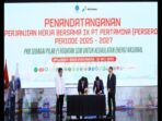 JAKARTA — PT Pertamina (Persero) bersama Federasi Serikat Pekerja Pertamina Bersatu (FSPPB) secara resmi menandatangani Perjanjian Kerja Bersama (PKB) ke-IX untuk periode